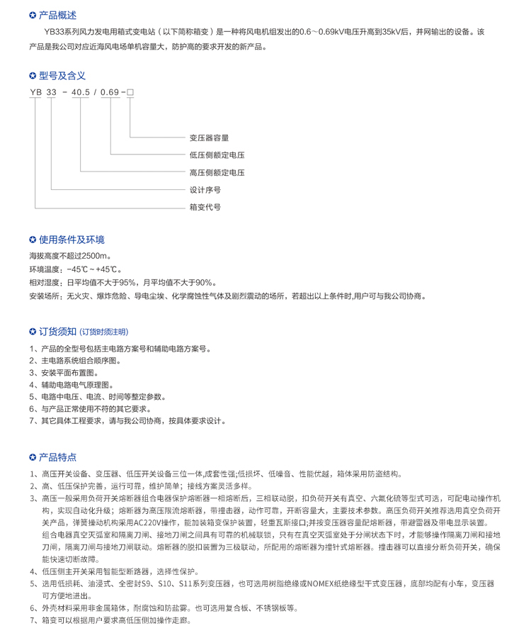 承德YB33風力發(fā)電用箱式變電站