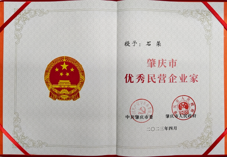 我司董事長石榮獲評為“”肇慶市優(yōu)秀民營企業(yè)家”,這是對石榮在企業(yè)經(jīng)營管理方面所作貢獻(xiàn)的認(rèn)可。他踐行卓越績效的管理模式,重視員工培訓(xùn)和發(fā)展,同時注重產(chǎn)品質(zhì)量和客戶服務(wù),為企業(yè)的發(fā)展奠定了堅實的基礎(chǔ)。