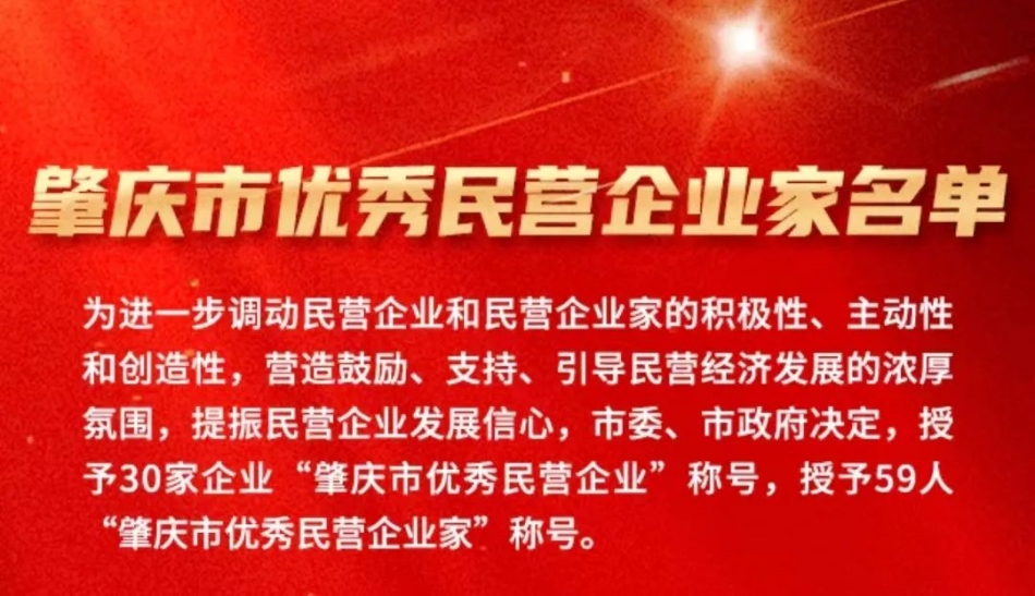 為進(jìn)一步調(diào)動民營企業(yè)和民營企業(yè)家的積極性、主動性和創(chuàng)造性,營造鼓勵、支持、引導(dǎo)民營經(jīng)濟(jì)發(fā)展的濃厚氛圍,提振民營企業(yè)發(fā)展信心,市委、市政府決定,授予30家企業(yè)“肇慶市優(yōu)秀民營企業(yè)”稱號,授予廣東健奧科技有限公司董事長石榮等59人“肇慶市優(yōu)秀民營企業(yè)家”稱號。
