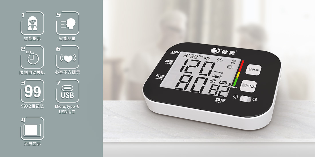 智能芯片,多重技術(shù)升級(jí), 99組記憶數(shù)據(jù)精確掌握血壓變化